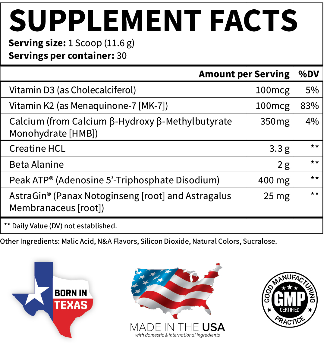 With 3.3g of ultra-soluble Creatine HCl for rapid absorption and reduced bloating, plus 2g of Beta-Alanine to buffer fatigue, this formula fuels strength and power through every rep. 350mg of Calcium HMB helps preserve lean mass under stress, while 400mg of Peak ATP® drives explosive cellular energy output for increased performance.